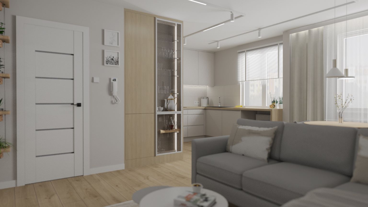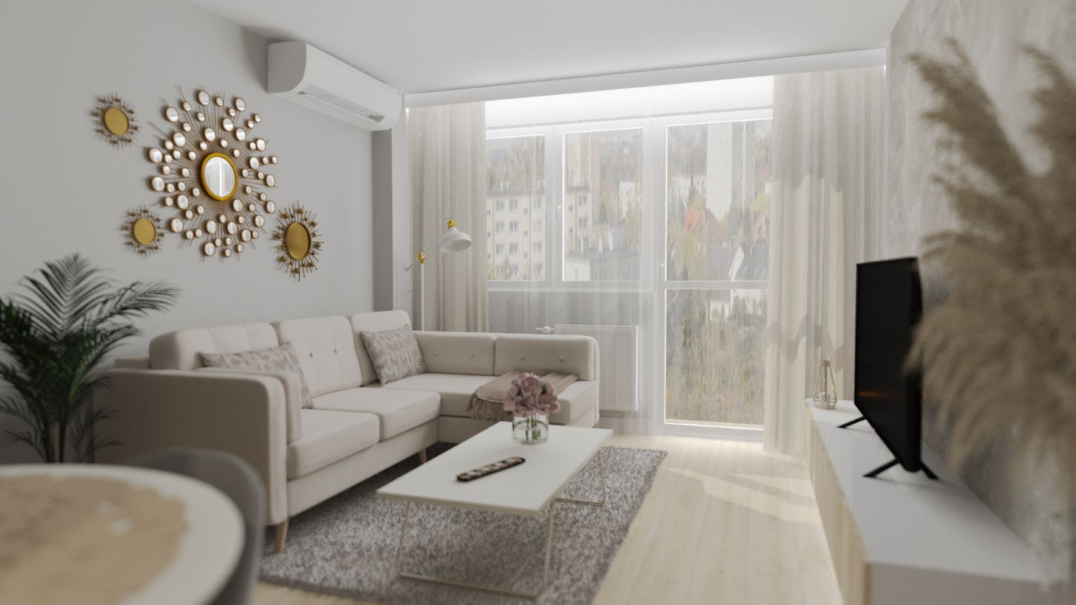 Według wytycznych Inwestora mieszkanie miało być po prostu "jasne". Wybrałyśmy umiarkowany styl "boho", który jest bardzo neutralny a zarazem przytulny...